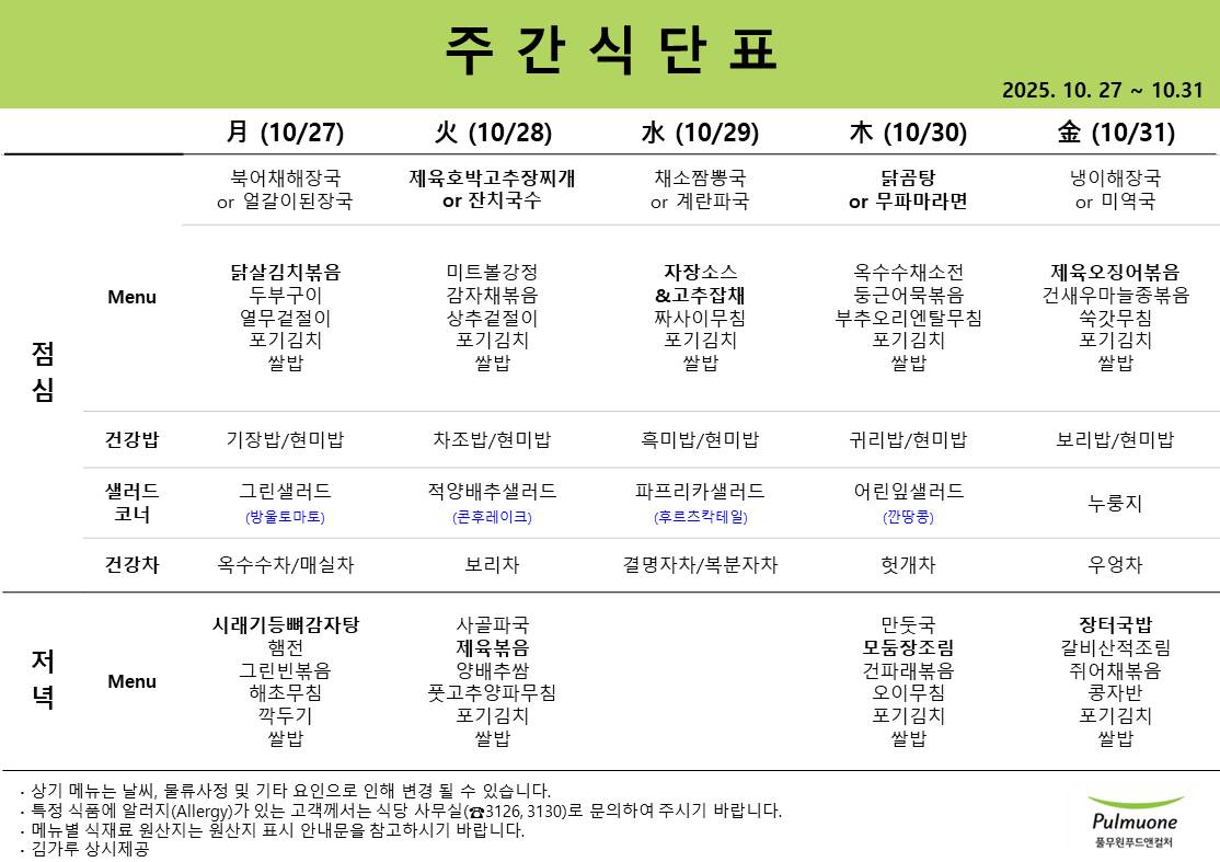 주간식단표(10.27~10.31)